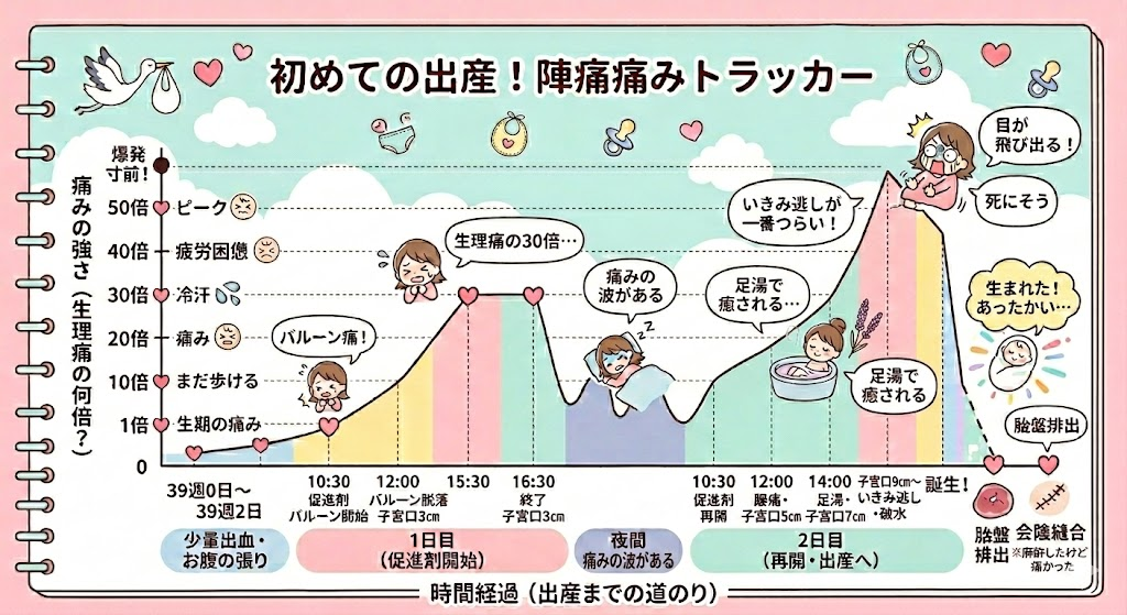 言葉だけでは伝わりにくいこの「出産の壮絶さ」と「痛みの推移」を、私の記憶を振り返ってグラフにまとめてみました!